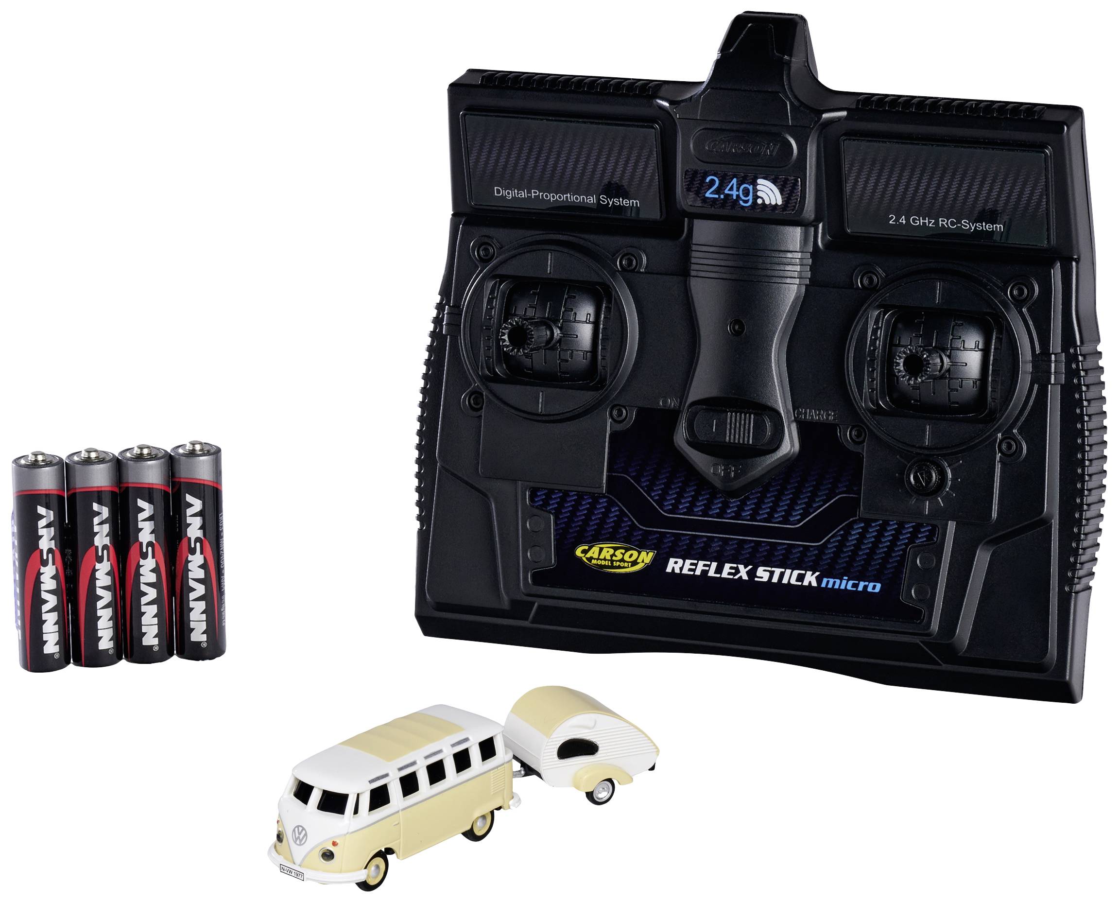 Carson Modellsport 500504164 VW T1 SambaBus mit Wohnwagen 1:87 RC Modellauto Elektro Straßenmodell