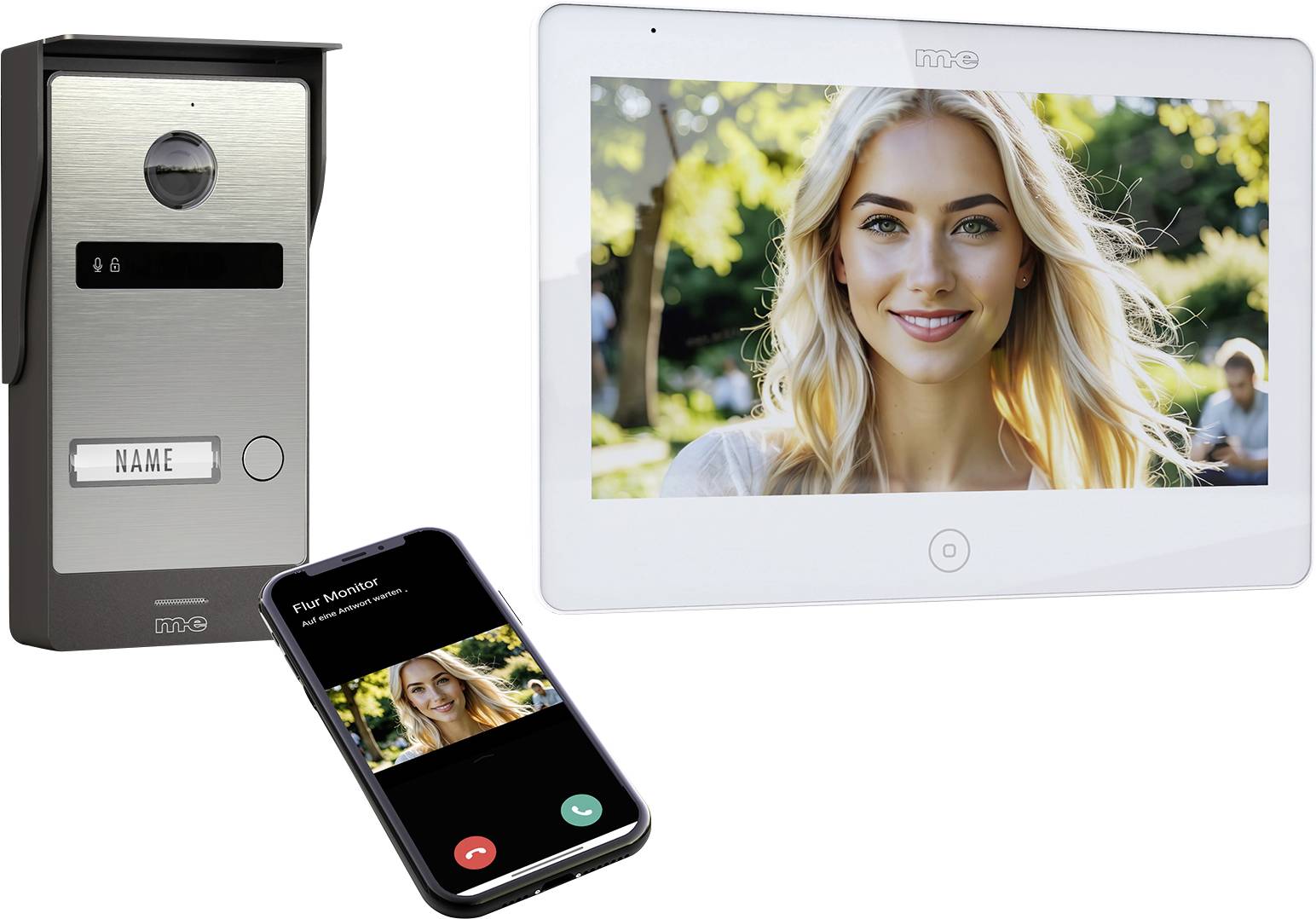 m-e modern-electronics ALL-V10S-M10W-IPS Video-Türsprechanlage 2-Draht 2-Drahtübertrager Edelstahl (gebürstet), Weiß