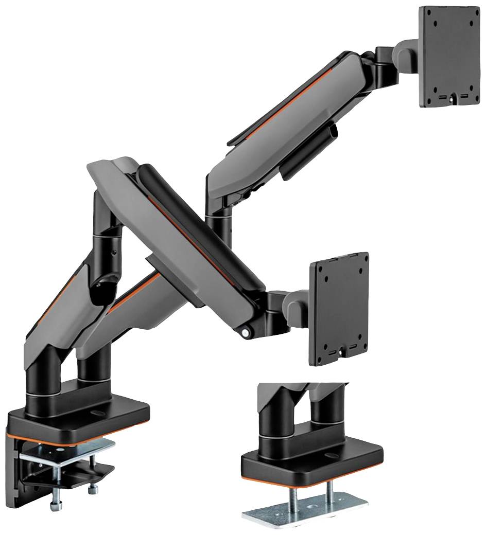 ROLINE LCD-Doppelarm, Tischmontage, Gasfeder, je 5 Gelenke, 17-35 Zoll, bis 2x 20 kg