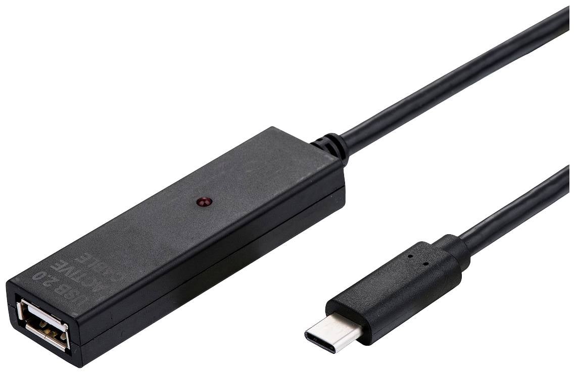 VALUE USB 2.0 Verlängerung, aktiv, mit Repeater, A-C, schwarz, 10 m
