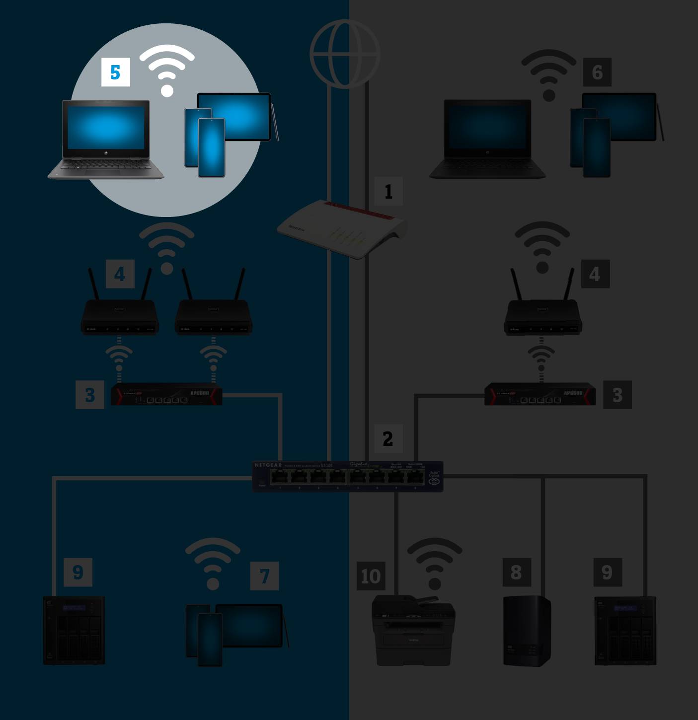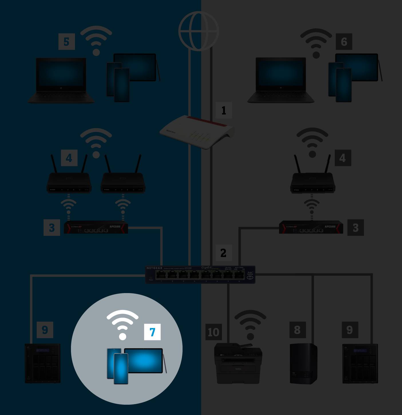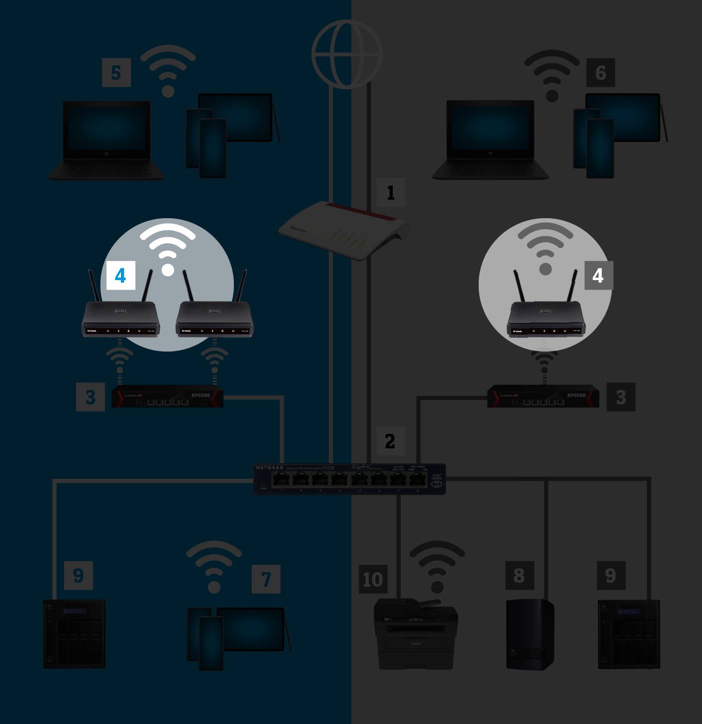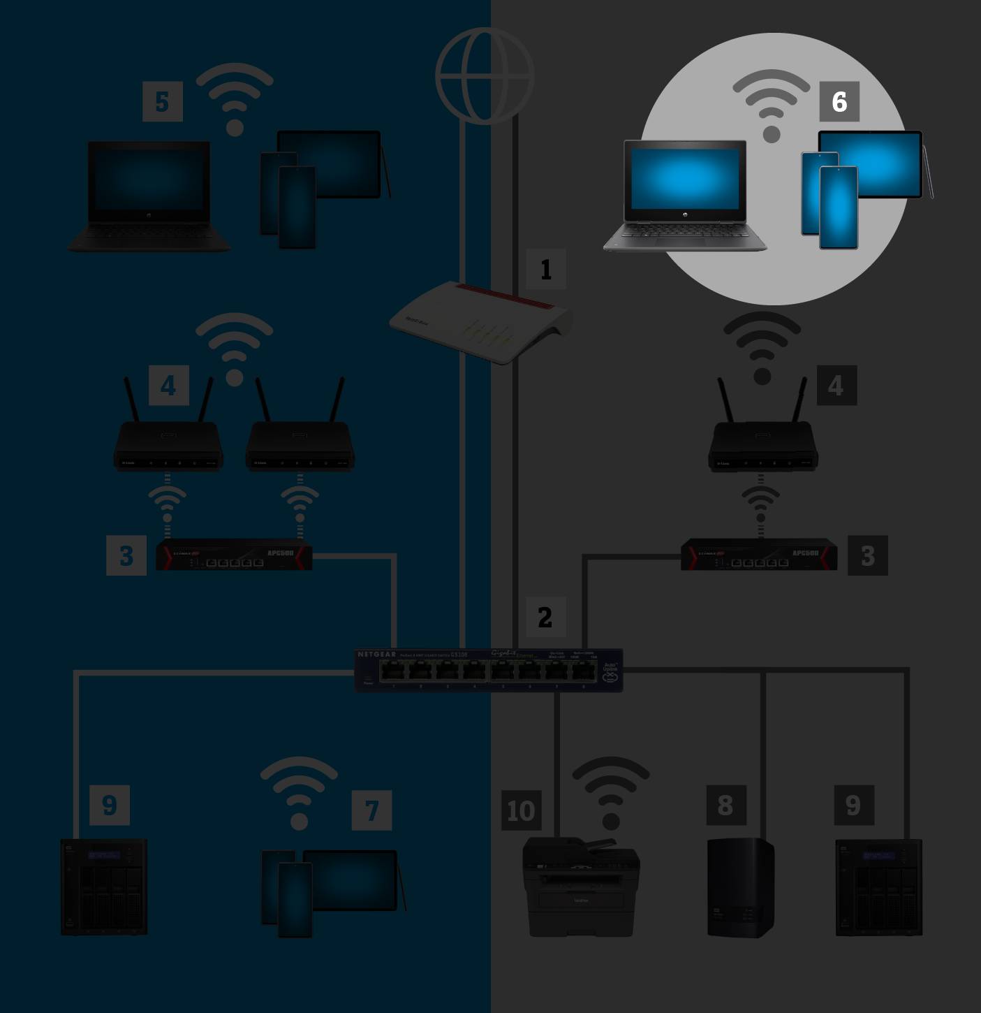 Haben Sie einen Plan gemacht und ein Konzept für Ihr WLAN-Netzwerk erstellt, geht es daran, die einzelnen Geräte auszusuchen. Dabei spielt die Kompatibilität zwischen den Geräten, die Art der Montage sowie eine einfache Installation und Wartung eine grosse Rolle. Weitere, wichtige Faktoren sind Sicherheit, Schnelligkeit, Flexibilität, Trennung von Nutzergruppen, Management-Möglichkeiten, bauliche Gegebenheiten und nicht zuletzt die Kosten.