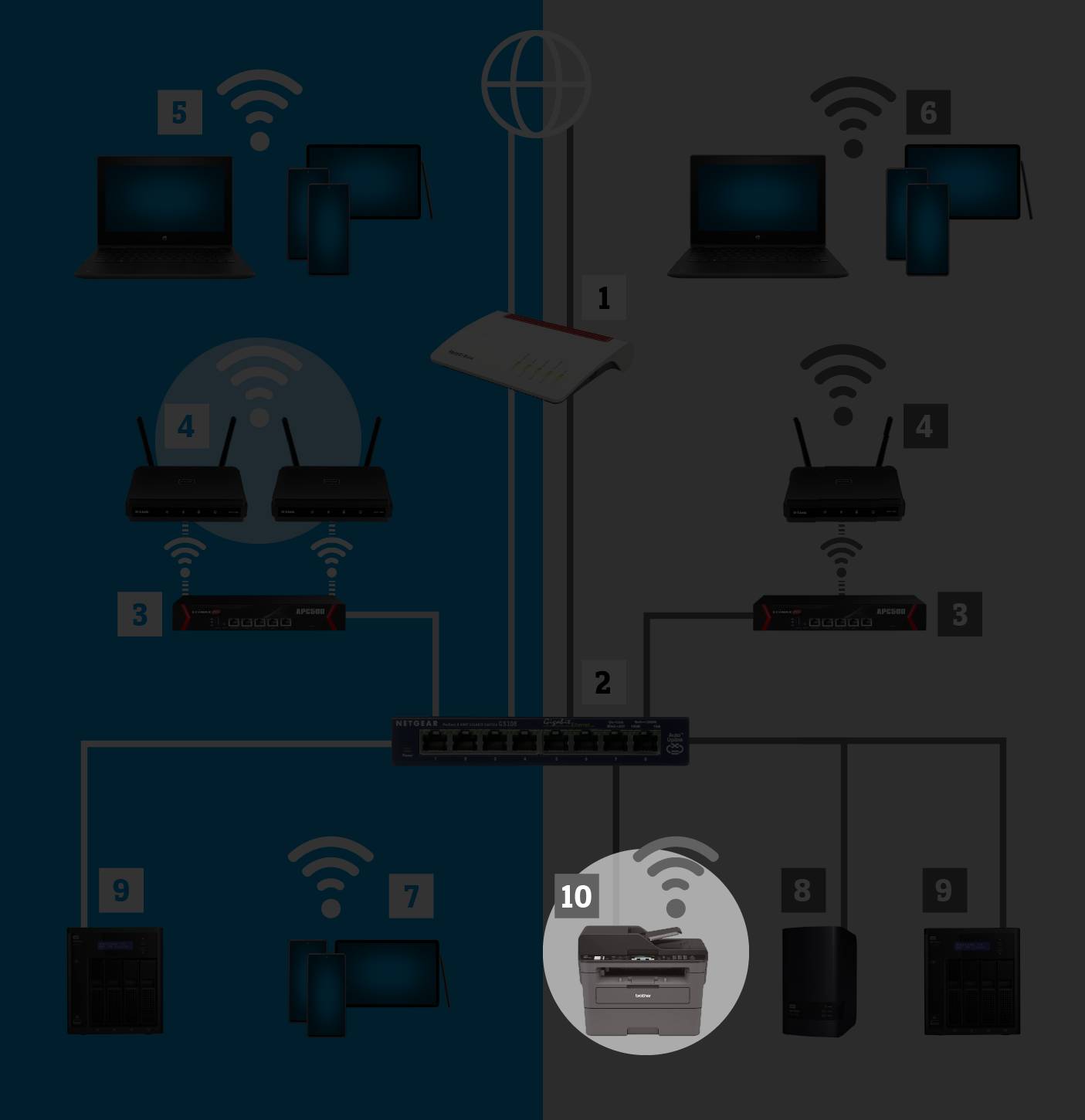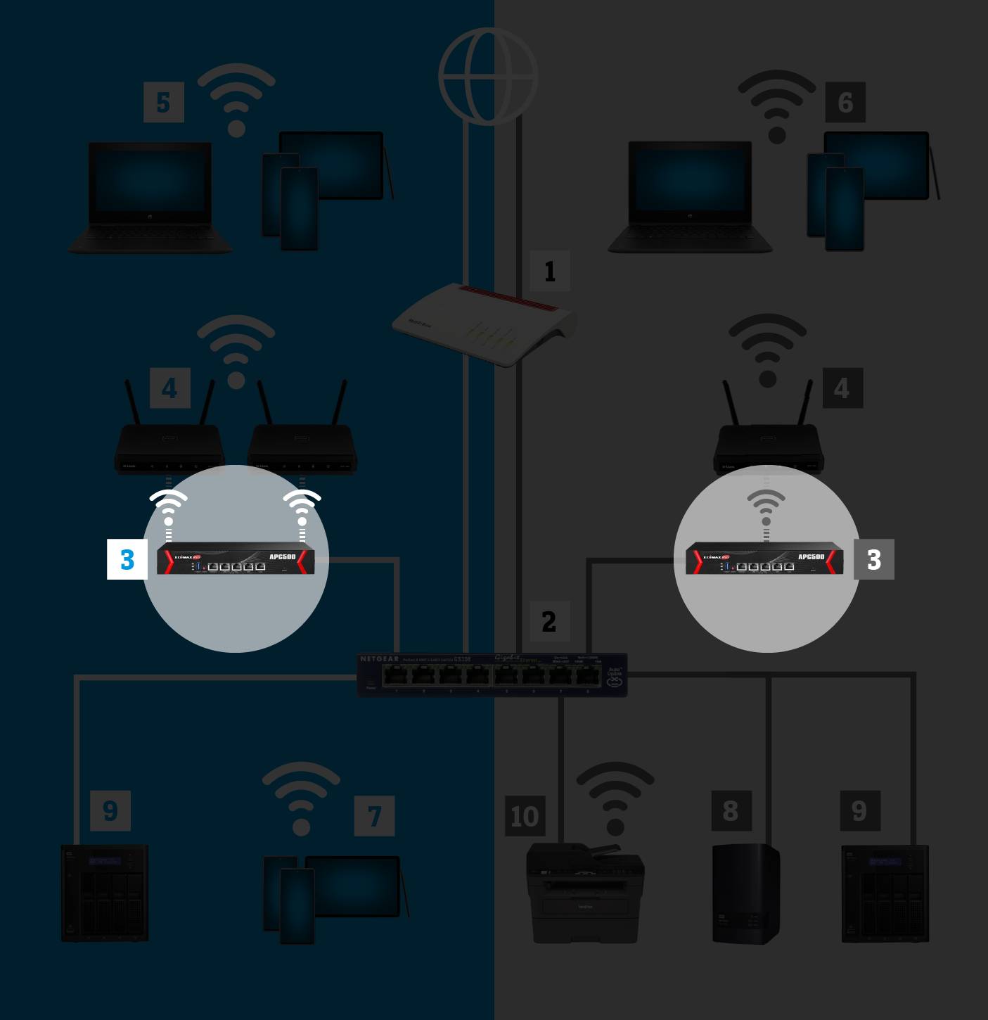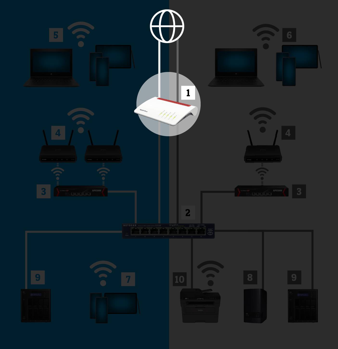 Haben Sie einen Plan gemacht und ein Konzept für Ihr WLAN-Netzwerk erstellt, geht es daran, die einzelnen Geräte auszusuchen. Dabei spielt die Kompatibilität zwischen den Geräten, die Art der Montage sowie eine einfache Installation und Wartung eine grosse Rolle. Weitere, wichtige Faktoren sind Sicherheit, Schnelligkeit, Flexibilität, Trennung von Nutzergruppen, Management-Möglichkeiten, bauliche Gegebenheiten und nicht zuletzt die Kosten.