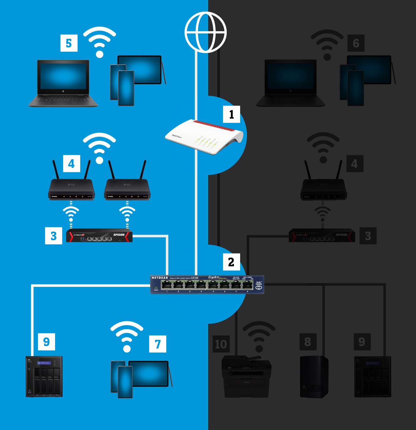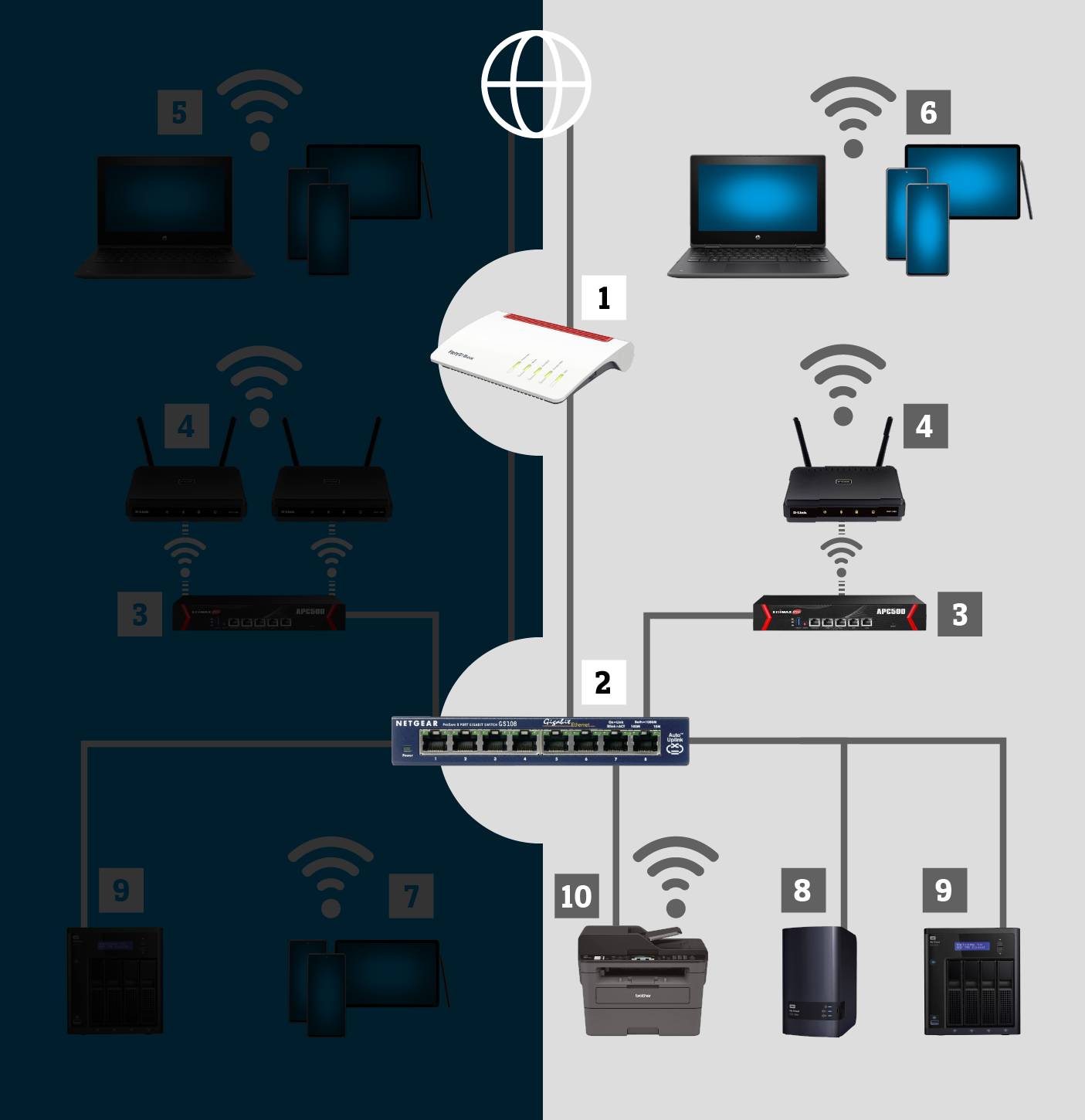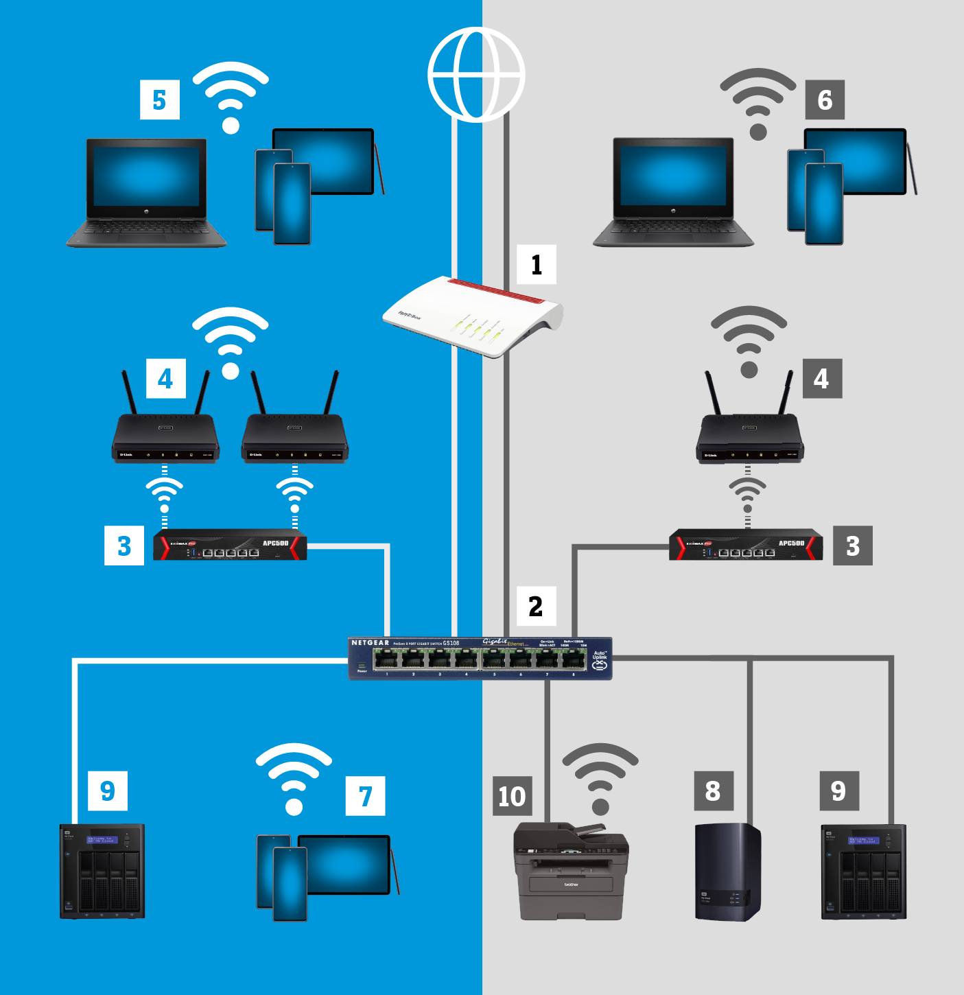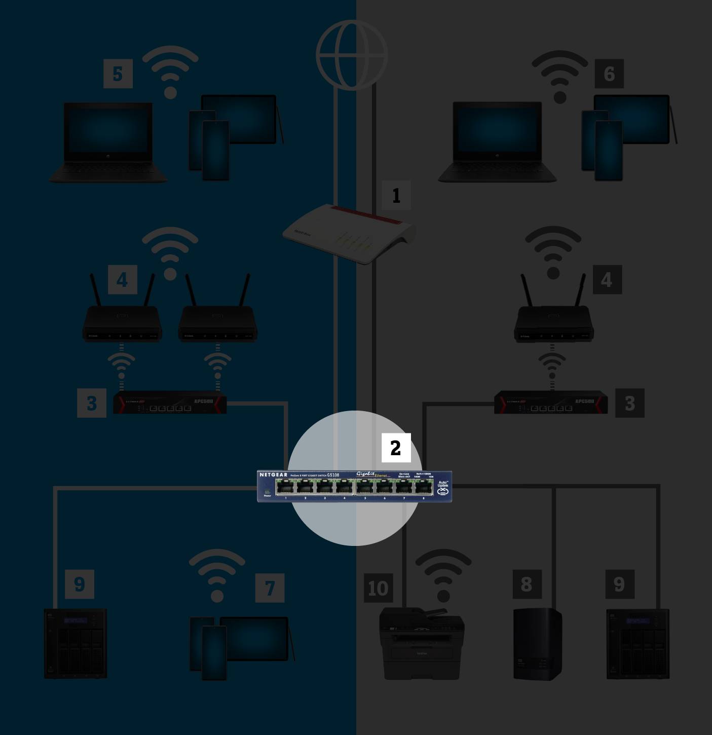 Haben Sie einen Plan gemacht und ein Konzept für Ihr WLAN-Netzwerk erstellt, geht es daran, die einzelnen Geräte auszusuchen. Dabei spielt die Kompatibilität zwischen den Geräten, die Art der Montage sowie eine einfache Installation und Wartung eine grosse Rolle. Weitere, wichtige Faktoren sind Sicherheit, Schnelligkeit, Flexibilität, Trennung von Nutzergruppen, Management-Möglichkeiten, bauliche Gegebenheiten und nicht zuletzt die Kosten.