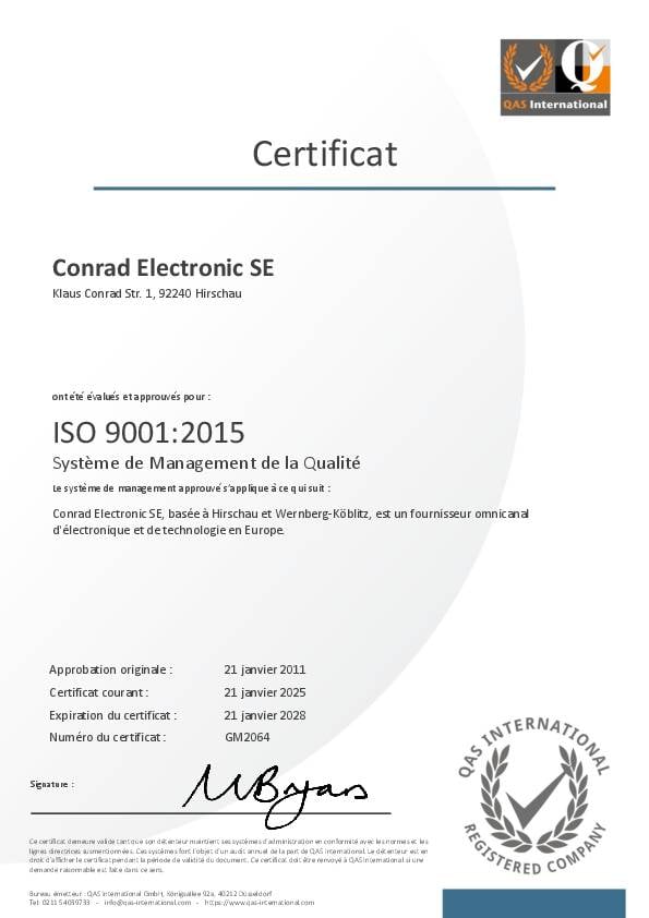 Le 7 novembre 2013, le TÜV NORD a certifié notre nouvelle zone "EPA" (zone de protection antistatique) du centre logistique ainsi que l'ensemble des procédures de gestion des décharges électrostatiques à Conrad sur la base de la norme DIN EN 61340-5-1 et a attesté la manipulation très professionnelle et soigneuse des composants sensibles aux décharges électrostatiques.