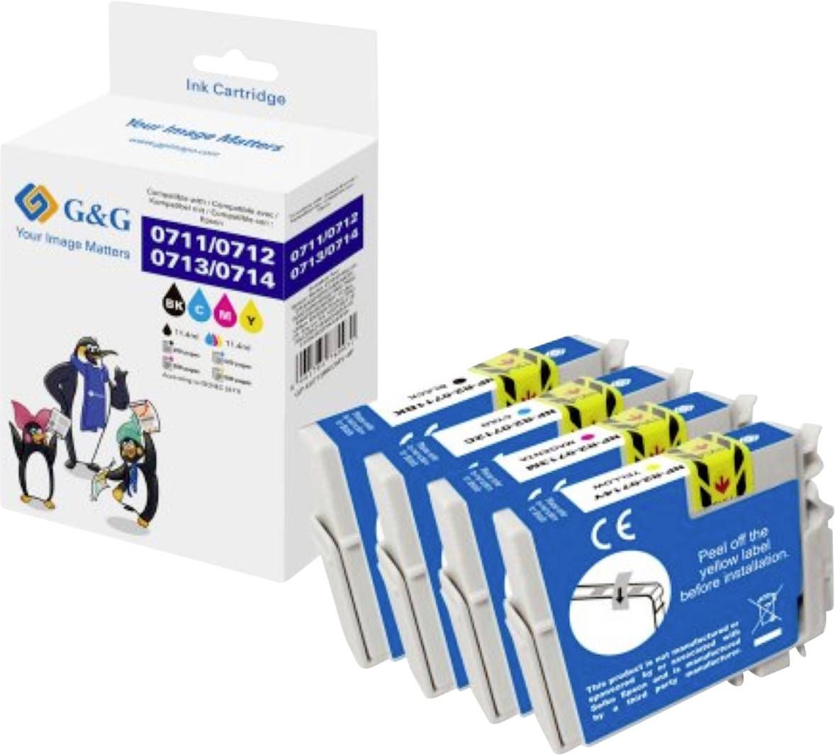 G&G Encre compatible noir, cyan, magenta, jaune NP-R2-0711-4 GP-E0715BKCMY-4P