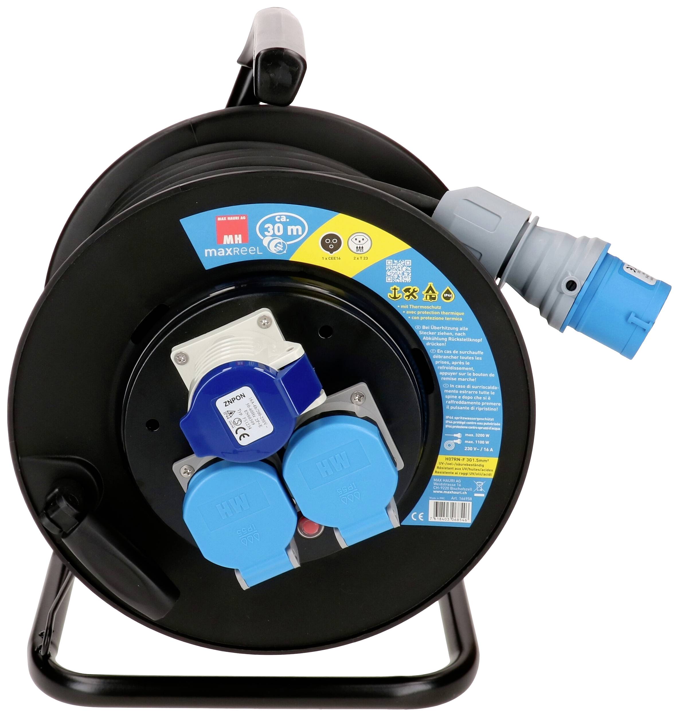 Max Hauri 166958 Enrouleur de câble 30 m noir Prise T23 16 A (3 pôles), prise CEE 16 A 3 pôles