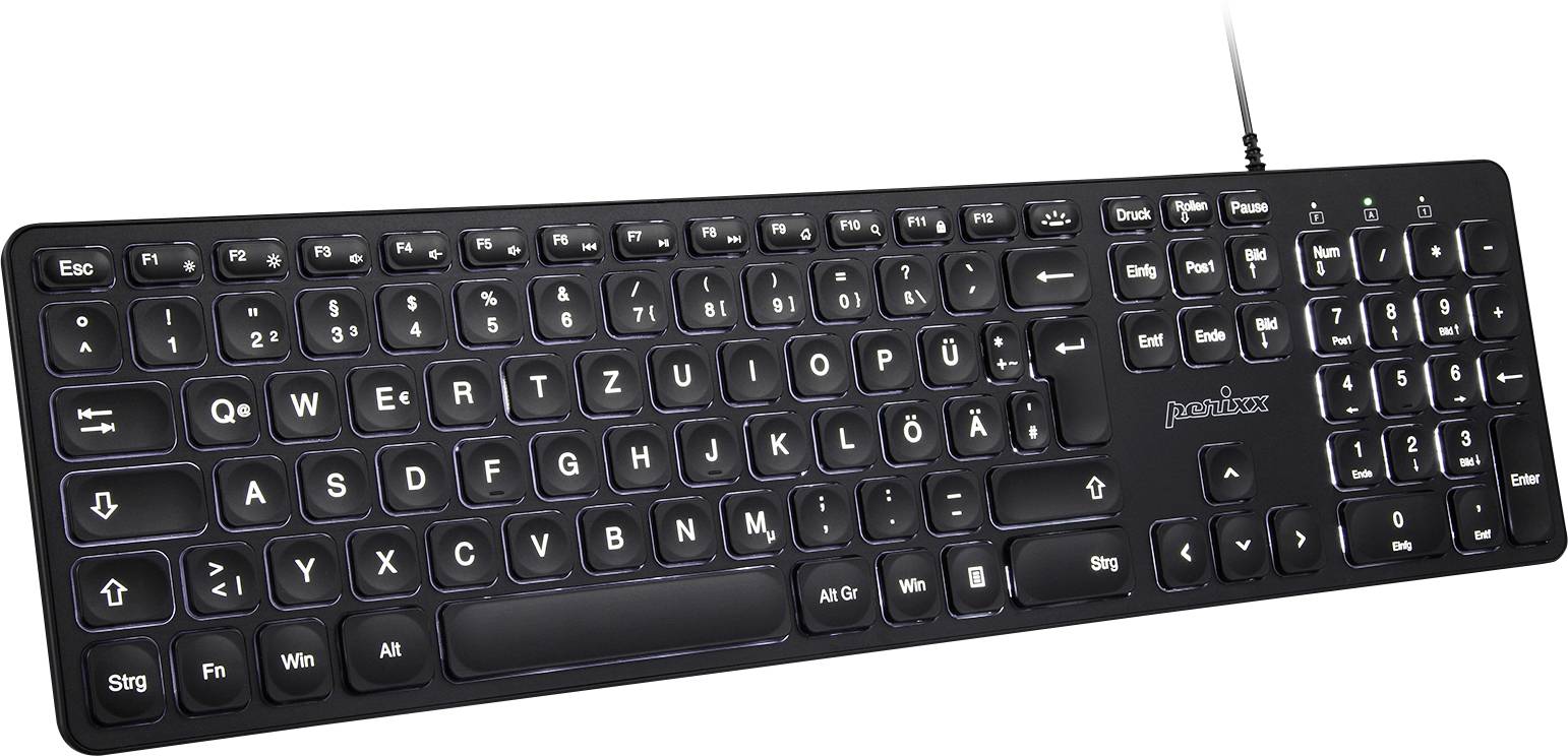 Perixx PERIBOARD-331 DE B filaire Clavier allemand, QWERTZ noir éclairé