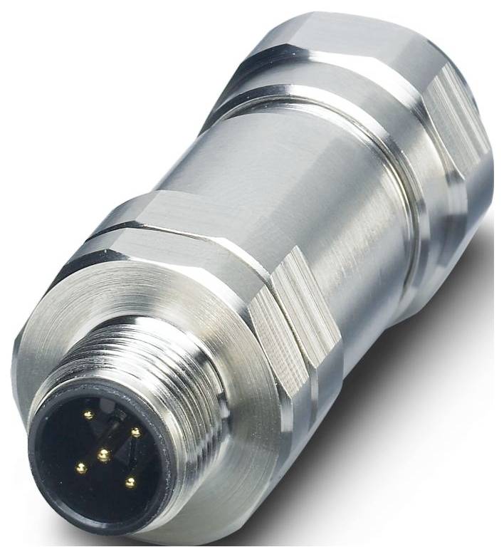 Un connecteur industriel métallique de forme cylindrique avec plusieurs broches, utilisé pour les applications électriques.