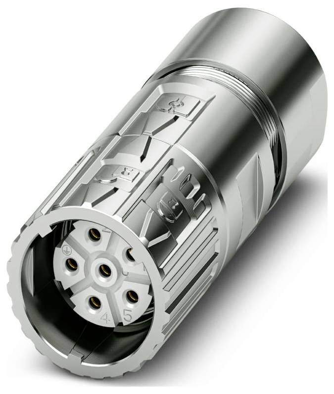 « Un connecteur cylindrique métallique avec cinq emplacements clairement numérotés, présentant des motifs de conception complexes sur le boîtier. »