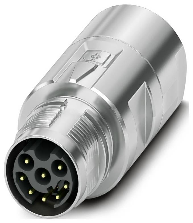 Un connecteur industriel circulaire en argent avec plusieurs alvéoles à broches, utilisé pour les machines lourdes ou l'équipement, démontrant les points de connexion.