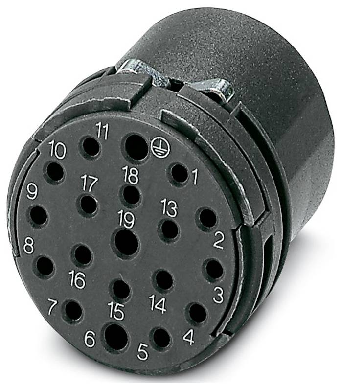 « Un connecteur électrique circulaire noir avec 18 broches numérotées disposées selon un motif spécifique pour une fixation sécurisée dans les appareils électroniques. »